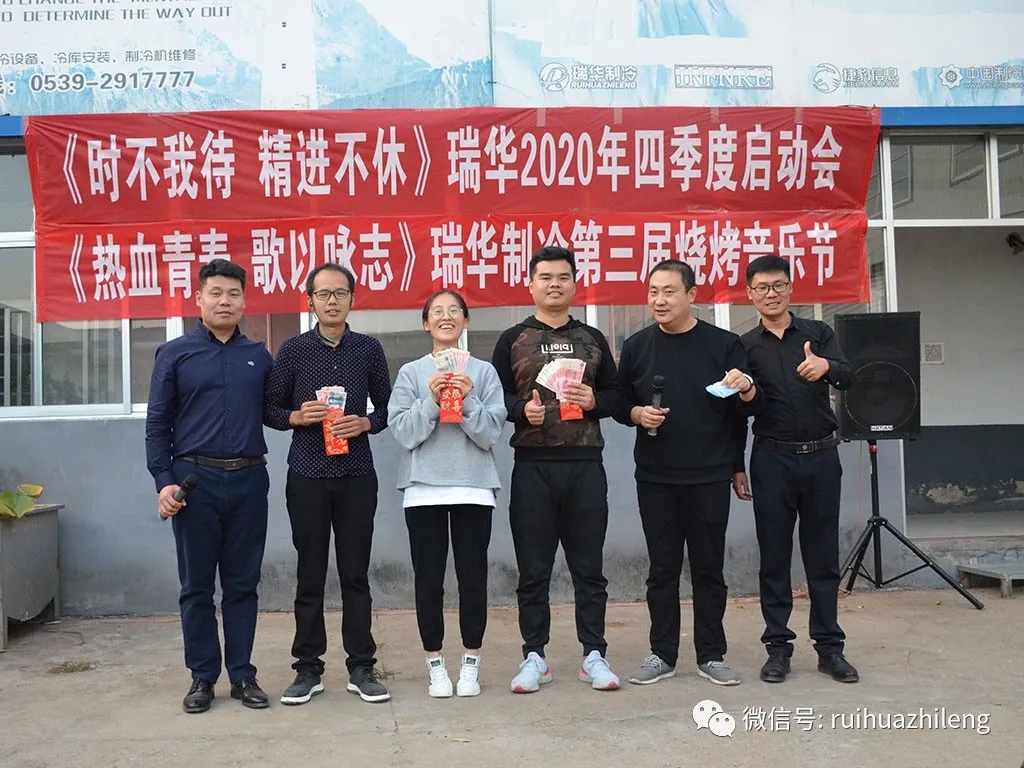 2020年10月9日,結(jié)束8天的國(guó)慶中秋長(zhǎng)假,瑞華制冷迎來(lái)了返工第一天。上午,大家忙著處理假期內(nèi)的部分工作;下午,來(lái)到倉(cāng)儲(chǔ)中心開(kāi)啟下午的活動(dòng)。分別進(jìn)行了熱身游戲、第二屆配貨比賽、四季度啟動(dòng)會(huì)與第三屆K歌燒烤音樂(lè)節(jié)活動(dòng)。大家共同度過(guò)了美好的一天,為國(guó)慶長(zhǎng)假畫(huà)上了圓滿(mǎn)的句號(hào),同時(shí)開(kāi)啟了四季度大幕。