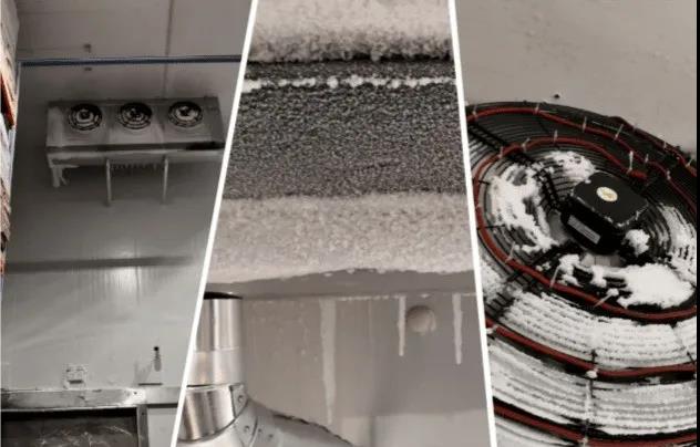 冷庫蒸發(fā)器為什么會結霜 ?由于冷庫內蒸發(fā)器表面結霜,妨礙制冷蒸發(fā)器(管道)冷量傳導與散發(fā),影響制冷效果。當蒸發(fā)器表面的霜層(冰層)厚度達到一定程度時,制冷效率甚至下降到 30%以下,導致電能較大浪費,且縮短制冷系統(tǒng)的使用壽命。因此有必要在適當的周期內進行冷庫除霜操作。